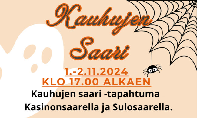 Kauhujen saari on täällä taas! Tule mukaan karmaisevaan kokemukseen Halloweenin aikaan Kasinonsaarelle ja Sulosaareen pe 1.11. klo 17 alkaen. Tapahtuma päättyy la 2.11. klo 21. Mukana lakumyyjät, karmaisevia rasteja ja mm. Savonlinnan 4H. Ohjelmassa on Samiedun opiskelijoiden järjestämä Kepposten saari, luurankoluola, kasvomaalausta ja selfieseinä. Paikalla myös lakumyyjä, halloween-pallot ja muita hyytävän hyviä herkkuja. Vesiseinänäytös…